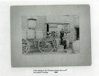 Image of the Thompson family making Cider on their family farm, taken around 1900. John Thompson is using a heading vise, IHS 4390
