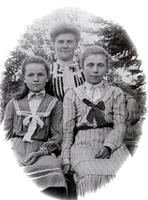 Portrait of three young girls - Jennie Reid (rear), Florrie Reid (left), and Millie Stewart (right)., IHS1719