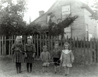 Photo of the children of Edward and Henrietta Guest (née Jobbitt) standing in front of their clapboard home in Big Bay, IHS1036