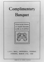 Menu for complimentary banquet - given to Dr. Alfred T. Little by the citizens of Innisfil when he left Innisfil for, IHS976