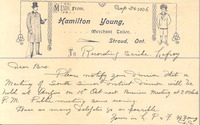 Memo from Hamilton Young, merchant tailor in Stroud to the Recording Scribe, Lefroy, most likely regarding a meeting of