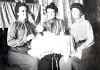 Photograph of Florence Beatty (left, m. Alec McCullough), Lydia Beatty (centre, m. Job Metcalfe), and Jean Donnelly , IHS1712
