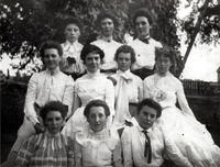 Pictured from left to right - Front Row: Unknown, Mildred Wallace, and Jean (or Tillie) Donnelly. Middle row: All, IHS1730