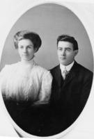 Wedding portrait of Scott Sharp and Luella Greensides, who were married on 3 June 1908. The photo was taken in a studio