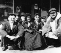 Group photo taken outside of the Village store - northwest corner, owned by Harry Albrecht., IHS529
