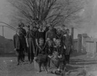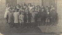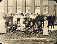 1912 group photo of the Cookstown Continuation School's students. The photo was taken beside the school itself with the,