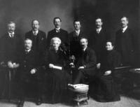 Portrait of the Holly Methodist Ladies Aid in 1912. Pictured from left to right - Back row: Unknown, Jennie Eden,, IHS2701