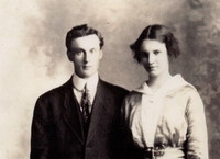 Wedding day portrait of Hugh and (Annie) Mabel Donnelly. Hugh was the son of Hugh Donnelly II and Rebecca Wray. Mabel, IHS1713