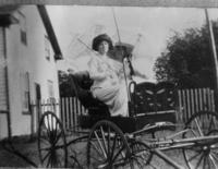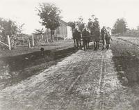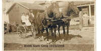Photo of Ward Webb and his family circa 1915-1918 on a buggy pulled by two horses in front of a farmhouse. Donated to