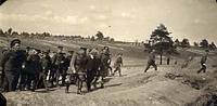 Photo of the 127th Battalion in training in 1917 in vicinity of the Cookstown Fairgrounds. The image shows a number of