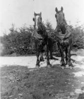 Mr. Fred Quantz's team of horses before he was married, around the time of the first World War., IHS651