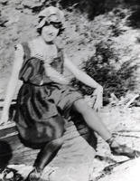 Photo of Ruby Wiswell of Fort Erie, a cousin of the Guest family, wearing an early 20th century bathing suit when, IHS1039
