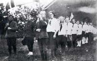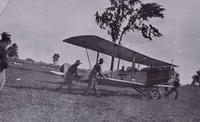 Photo of a biplane on a training flight from Camp Borden that made a forced landing on a farm field in the north half of,
