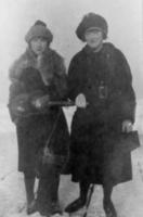 Photo of two young women, one of whom is Jean Quantz, dressed in winter coats, hats, and gloves, on a frozen Lake Simcoe, IHS668