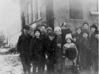 This school had been burned in the previous summer (1917). This is the new school erected in 1917. They were in this, IHS1137