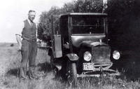 Roy Goodfellow with a 1920 Ford Coupe, with a Saskatchewan license plate. The photo was taken in approximately 1928., IHS22