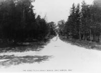 Postcard depicting "The Road to Killarney Beach, Lake Simcoe, Ontario," which is known today as the 4th Line from County, IHS34