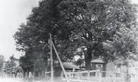 Photo of Big Bay Point school with church in background. The school was located in Lot 23, and the church, which was, IHS1029