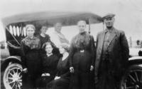 Photo of Mr. and Mrs. J.E. Hodgson (far left, left), and two unknown women posing beside a car. Mr. Hodgson was, IHS2674