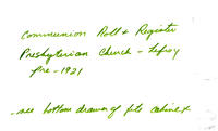 Communion Roll and Register- Presbyterian Church, Lefroy. Before 1921 (from Lefroy United Church)