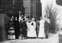 Back Row L to R: Addie Alpin, Marjorie Reid, Mina Henry, Florence Walt (and behind her, Teacher: Birdie Warnica), Bruce,