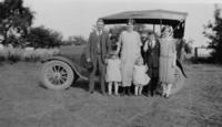 Photo of Albert Pratt's first car, a Chevy 490 from circa 1918, and his family. Pictured (from left to right) are:, IHS2254