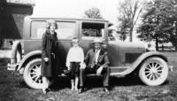 Photo of the Duncan family of Churchill in front of their 1927 Essex, known as a "Super Six". Pictured are Mr. and Mrs., IHS2348