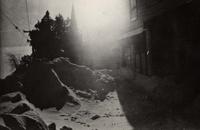 Innisfil Township Office, circa 1930, during a snow storm, southwest corner Churchill., IHS254