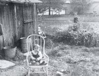 A. Baby Keith Jobbitt in chair at rear of home, note store (now Homelife) in background, IHS4148