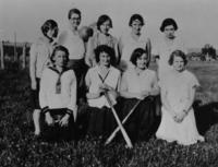 Outdoor team photo of the Knock Ladies Baseball Team in 1931. Pictured from left to right, back row, standing: Nancy, IHS1610