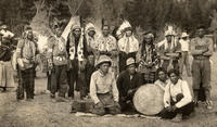 Mr. King with the white shirt and tie and Indian chief headdress.,