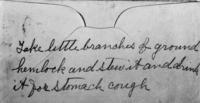 Medicinal Recipe. Take little branches of ground hemlock, stew it and drink it for stomach cough., IHS3118