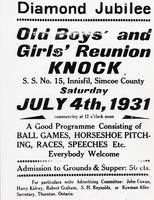 Poster/flyer advertising Diamond Jubilee "Old Boys and Girls Reunion" at Knock SS15 (Innisfil) July 4, 1931, IHS2906