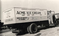 The Acme Ice Cream truck from Toronto delivered ice cream to the Stonecroft Motor Camp in milk-can like containers. The, IHS1830