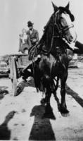 Photo taken of the Thornton Old Boys Reunion Parade. George Keast in the stovepipe hat is driving the horse-drawn wagon,, IHS3202, IHS3216