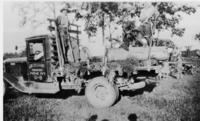 Image of Art Pugh taken in 1933. He is standing in from of a 'Premier Gasoline' truck, said to be delivering gas from, IHS1831