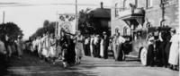Thornton Old Boys' Reunion Parade. Showing home of Mrs. W.M. Hunter, formerly Alex Stewart - house next to L.O.L. Hall, IHS3209