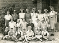 Class photo taken circa 1940 at S.S. #11 Craigvale School outside of the school building. Pictured from left to right,