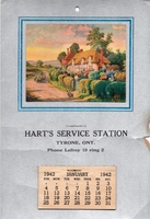 Complimentary calendar for 1942 from Hart's Service Station in Tyrone. The calendar consists of the image of a coloured