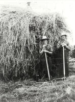 Haying at the farm of Harold Matchett. At this time loose hay was pitched with pitch forks onto hay wagons. Pictured, IHS1222