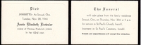 Funeral card for Annie Elizabeth Jobbitt, née Brewster, known as Hanna. The card reads: "Died - Jobbitt: At Stroud, Ont.