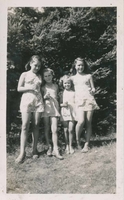 Photo of four young girls identified as Gladys, Flo, Shirley, and Lil eating ice cream at Innisfil Park in 1944.
