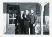 Photo of three men in the Constable family posing in front of the porch of a house. From left to right are Alexander,