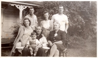 Black and white photo taken of the Constable family in 1946. Pictured from left to right, back row: Mac Constable, Jean