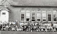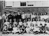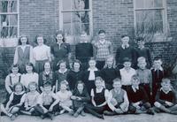 Group photo of the students of Cookstown Public School for the 1946-1947 school year. The students are seated, kneeling,,