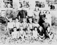 Class photo from St. Paul's School, 1946. Pictured from left to right, back row: Velma Hubbert (teacher), Bruce McArthur, IHS1089