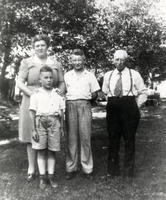 Douglas Hughes (centre) pictured with his mother Jean (left), father Wesley (right), and brother Robert (front)., IHS1428