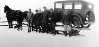 Bill Johnson's Chevrolet c. 1933, which was possibly stuck in the snow. Pictured in the photo from left to right: Robert, IHS990