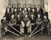 Team photo of the Stroud Hockey Club for the 1947-48 year, in which they were the ORHA Intermediate "B" Champions. They,