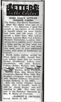 Newspaper Cutting - Letter to the Editor regarding Early Farm Settlers,, IHS2642